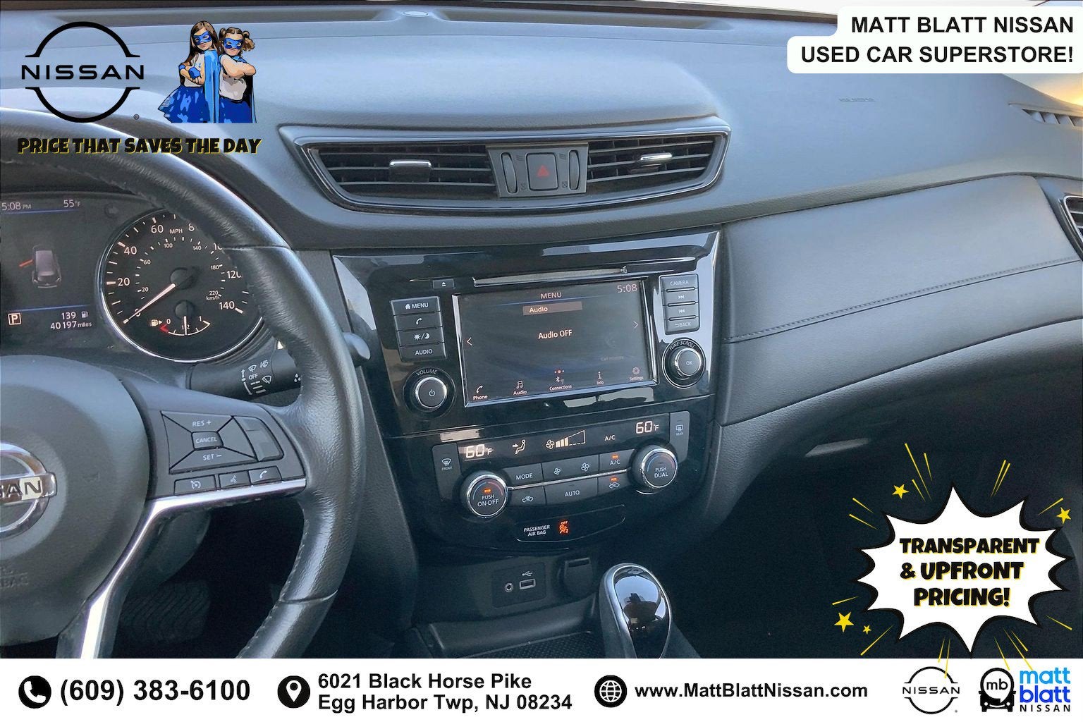 Matt Blatt, Tradepending, and Autofi make every effort to ensure the accuracy of information on this site. However, data or typographical errors may occur, and we reserve the right to correct them once identified. Vehicle pricing and availability are subject to change without notice, and all vehicles are subject to prior sale. Prices include all costs to be paid by a consumer, except licensing, registration, and taxes. IN ORDER TO QUALIFY FOR THE “MATT BLATT PRICE” INTERNET PRICING FOR NEW VEHICLES YOU MUST HAVE A CONFIRMED APPOINTMENT SCHEDULED AND KEPT WITH OUR INTERNET CENTER AND A PRINTED COPY OF THE PUBLISHED PRICE MUST BE PRESENTED IN PERSON TO A SALES REPRESENTATIVE PRIOR TO PURCHASING. INTERNET PRICING CANNOT BE USED IN CONJUNCTION WITH ANY OTHER PRICING OR ADVERTISEMENT. Optional dealer-installed protection products are available at additional cost and can be removed at the customer’s request. EPA-estimated mileage; actual mileage will vary. Offer expires at midnight tonight.