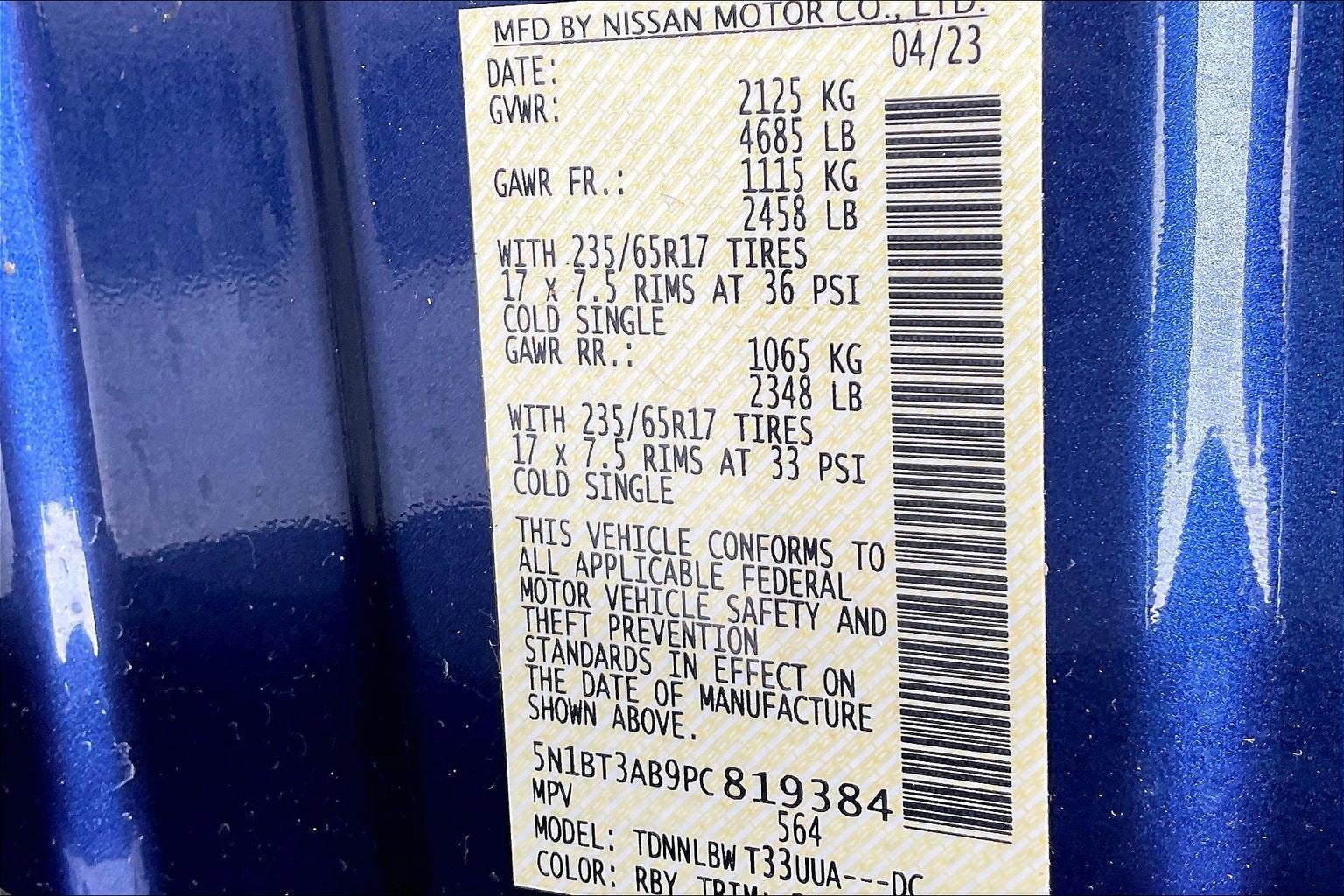 - GVWR: 4,685 lbs (2,125 kgs)