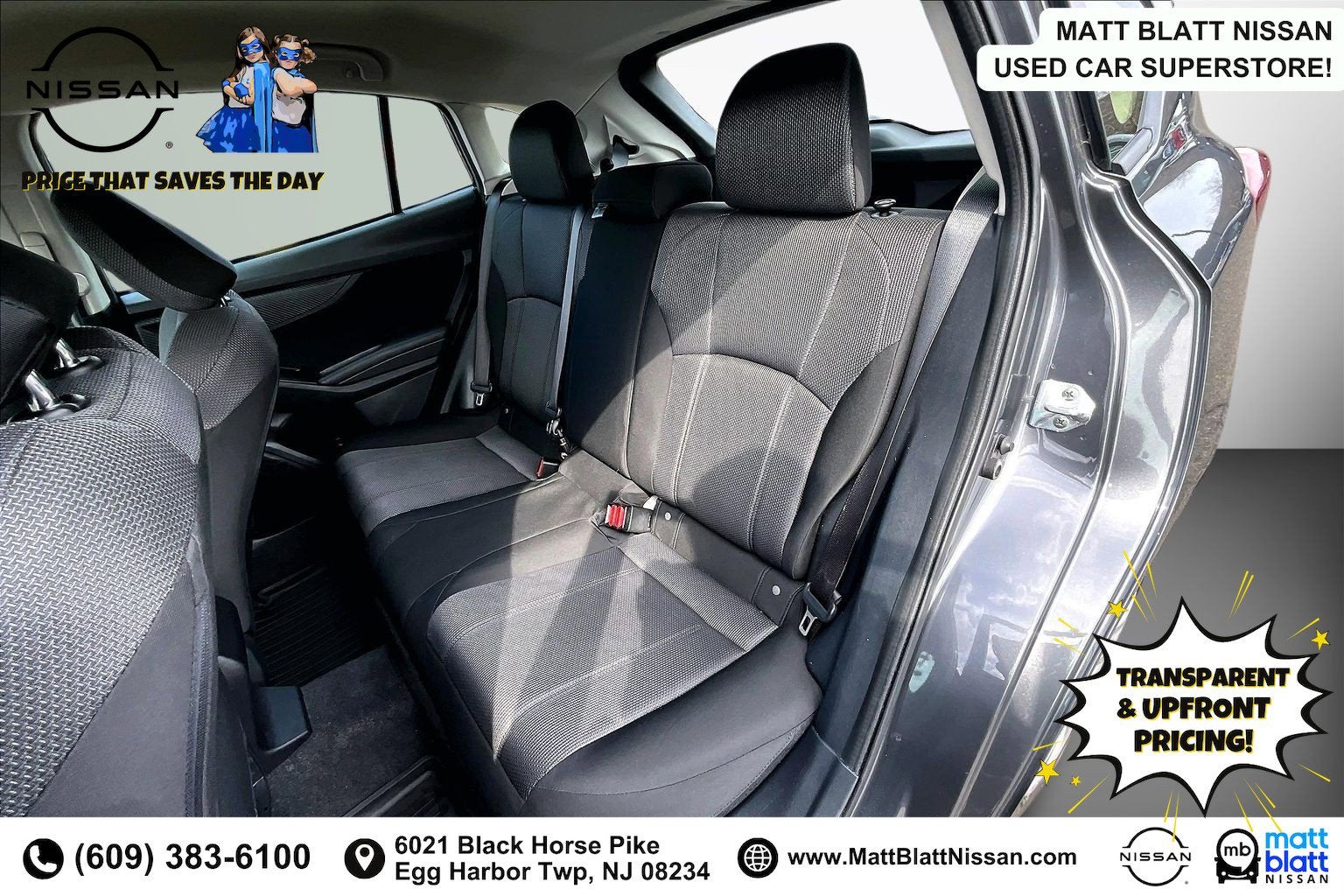 Matt Blatt has been serving New Jersey, Pennsylvania, Delaware, and New York for over 30 Years! Matt Blatt NISSAN is fully committed to maintaining a customer-first approach. Our team of professionals is dedicated to keeping the process quick and easy, putting YOU in control of the whole experience. We look forward to providing you with the finest vehicles and services! Buy with confidence knowing this vehicle has earned its place in our inventory by passing our rigorous multi-point inspection and reconditioning process by our 100% Certified Technicians and it is ready for many miles of reliability and comfort. TRANSPARENT & UPFRONT PRICING WITH NO HIDDEN FEES. We are constantly updating and strategically pricing our inventory to make sure you get a great price without having to be a great negotiator. Carfax is available free of charge on all of our vehicles.