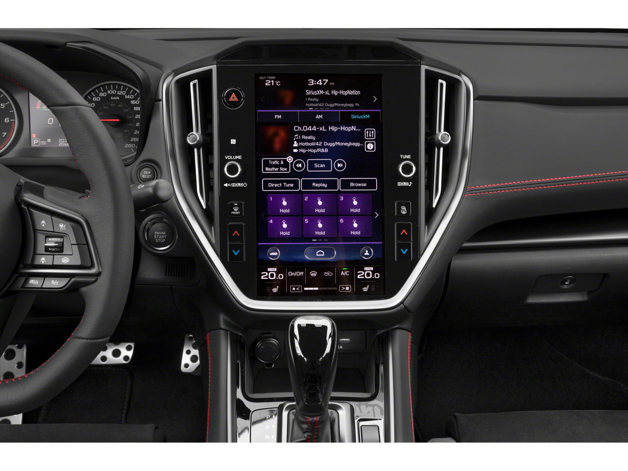 - Radio: Subaru STARLINK 11.6" Multimedia Plus Sys -inc: AM/FM stereo HD Radio, multi-touch gesture high resolution display screen, voice activated controls, Bluetooth® audio streaming connectivity, Bluetooth® hands-free phone connectivity, Bluetooth® hands-free SMS text messaging connectivity (applicable w/compatible cell phone), Near Field Communication (NFC), iPod control capability, rear-vision camera display, SiriusXM All Access radio (4 months free trial/subscription required after), SiriusXM Traffic (3 years free trial/subscription required after), SiriusXM Travel Link (3 years free trial/subscription required after), smartphone integration: Android Auto, Apple CarPlay, STARLINK cloud applications, 576 watt harman/kardon speaker system w/11 speakers and roof mounted audio, satellite and connected services antenna