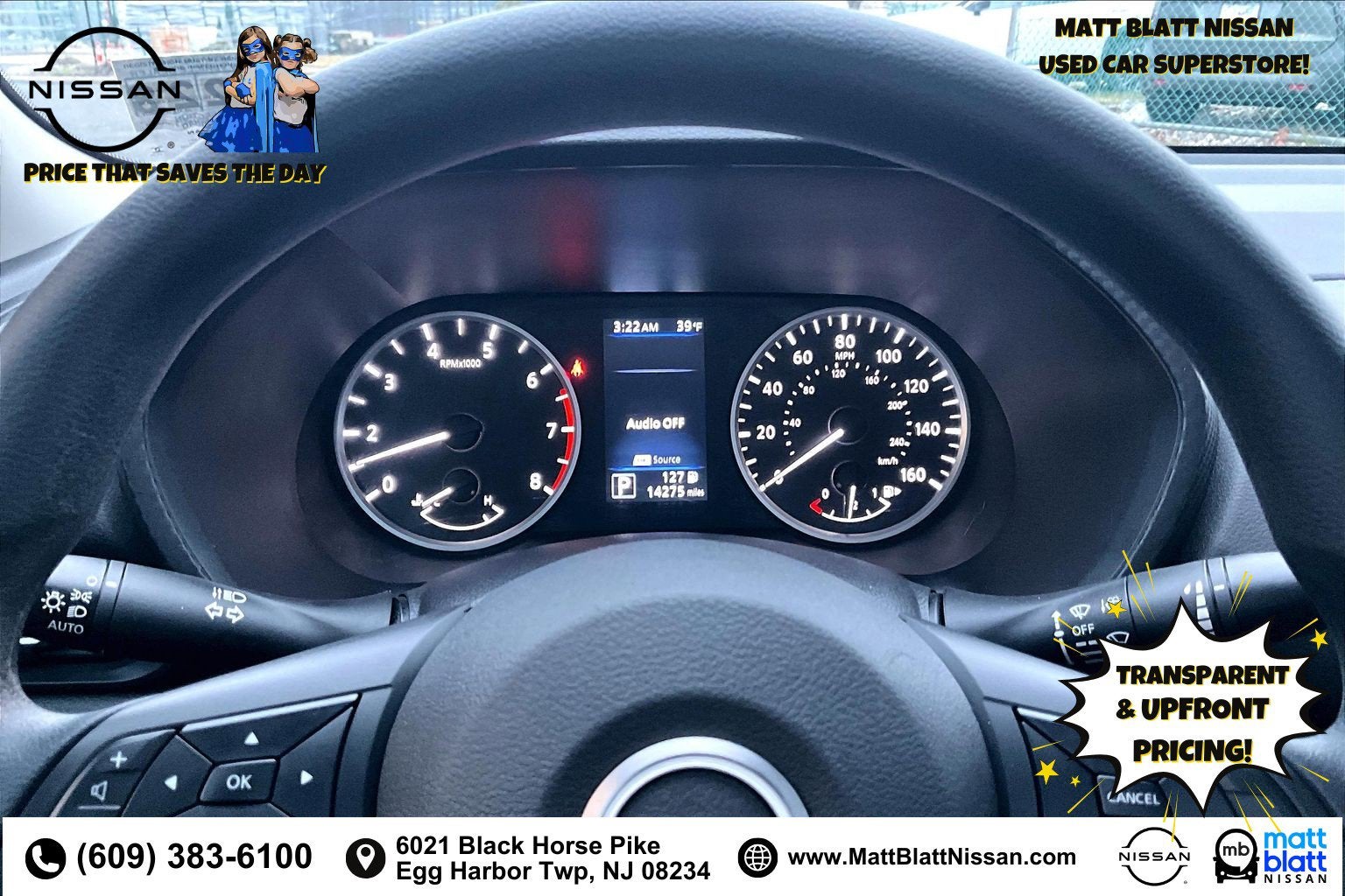 Matt Blatt has been serving New Jersey, Pennsylvania, Delaware, and New York for over 30 Years! Matt Blatt NISSAN is fully committed to maintaining a customer-first approach. Our team of professionals is dedicated to keeping the process quick and easy, putting YOU in control of the whole experience. We look forward to providing you with the finest vehicles and services! Buy with confidence knowing this vehicle has earned its place in our inventory by passing our rigorous multi-point inspection and reconditioning process by our 100% Certified Technicians and it is ready for many miles of reliability and comfort. TRANSPARENT & UPFRONT PRICING WITH NO HIDDEN FEES. We are constantly updating and strategically pricing our inventory to make sure you get a great price without having to be a great negotiator. Carfax is available free of charge on all of our vehicles.