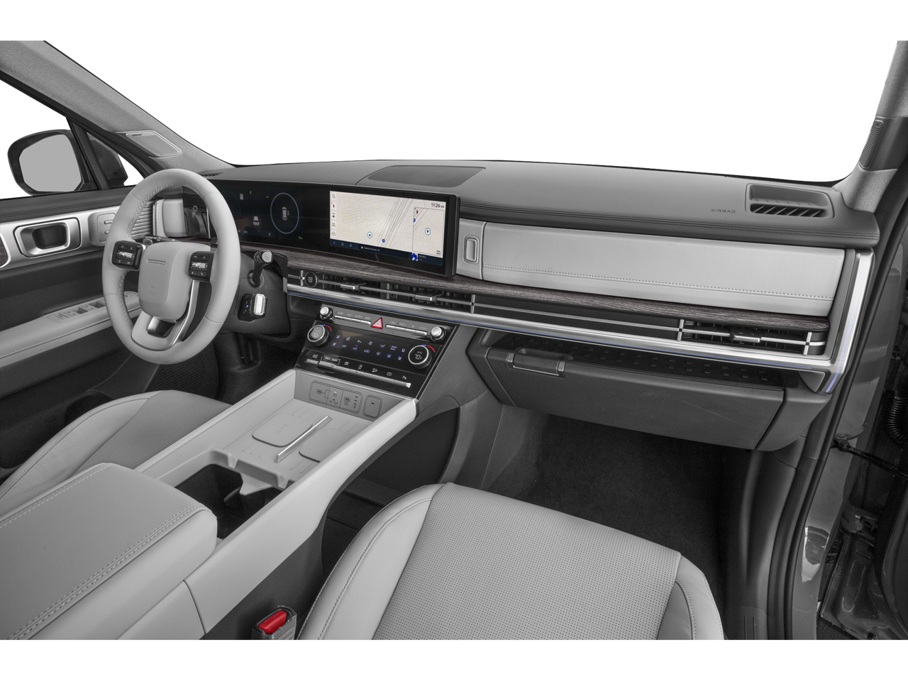 - Radio: AM/FM/HD Bose Premium Audio System -inc: 12 speakers including subwoofer, external amplifier, 12.3" wide touchscreen, Apple CarPlay and Android Auto, Bluetooth® hands-free w/wireless audio streaming, dynamic voice recognition, USB connectivity, SiriusXM, Blue Link+ connected car system, navigation system including traffic flow w/incident data via HD Radio (HERE) and rear seat quiet mode